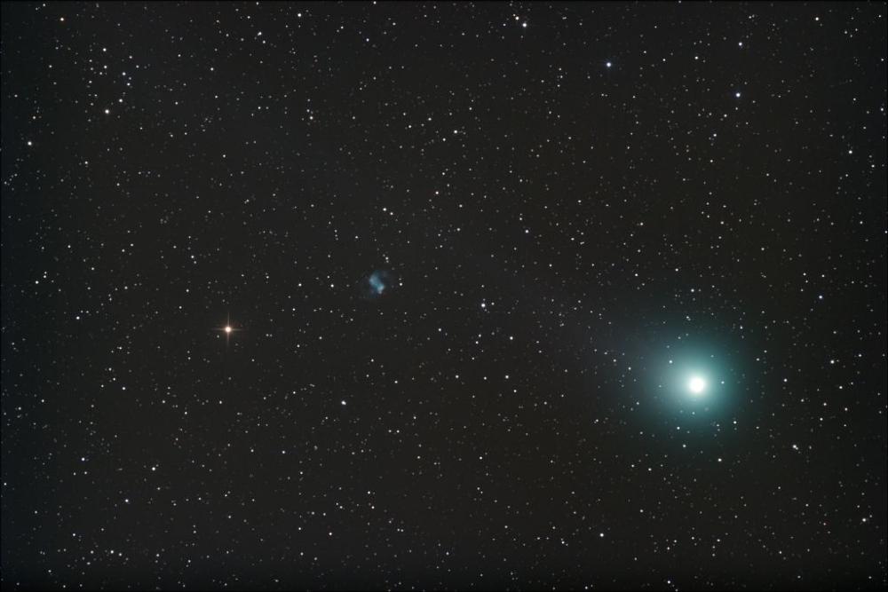 Der Komet und in ca. Bildmitte, der planetarische Nebel M 76. 20.02.2015 - 20:00 Canon 550D - 10 Zoll Newton Venus Mars Jupiter Saturn Mond Deepsky (N) Allgemeines Gästebuch Rechtliches Kometen Links Sonne Startseite Deepsky (G) Technik Ausrüstung Deepsky (K)