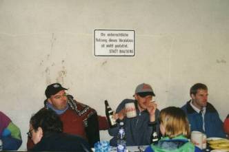 des Hallen-Haupteinganges, um uns für die kommenden Aufgaben mit Steaks,