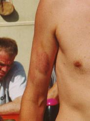 Rainer Bretag mit einem witzigen blauen "Bodypainting" am linken Oberarm (ein Klick auf's Bild vergrößert die Darstellung). |
